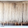 三、方河米粉:系金溪傳統名產,明朝時就見于市場。它選用優質晚米,人工精制而成,具有清白、細嫩、光滑柔韌的特點。久煮更韌,齒咬不斷,飄以雞肉湯,鮮美可口,縣人常把此品作為饋贈親友禮品。方何米粉制作時,須先把米淘三次,濾凈泔水,放入缸內用清水浸,熱天浸4-5天,冷天浸10-15天,然后用磨磨成粉,將粉搓成粗園條,放入熱水中煮,煮至半熟即取出,放至石碓中去碓,然后取出搓成粉筒般粗的粉聚,再用粉榨將粉聚榨入沸水鍋中,煮熟后撈起,放入裝有鮮井水的缸內,冷卻后把粉條鋪在竹摺上,排成長寬相同的粉條,放在太陽底下曬4-6個小時,干后取下,收藏待用。方何米粉既可涼拌吃,又能炒著吃,還能制成湯泡粉。