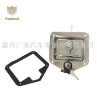 - 此款T型盒鎖通常用于鋁箱或隨車工具箱上。一個盒鎖配套2把鑰匙,一個密封墊圈。鑰匙默認是通開的,鑰匙材質是銅鍍鉻,盒鎖鎖芯有配防塵蓋,鎖芯自帶也有防塵片,雙重保護鎖芯不進水。背部鎖舌擋有直舌和彎舌兩款,隨機發貨。若有特殊要求,請下單的時候備注下。材質是正宗304不銹鋼鏡面拋光的。