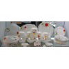 餐具的主要規格為:28頭(配置:6盤 6碗 6碟 6勺 1斗碗 1飯勺 1牙簽筒 1煙缸)、38頭(配置:4盤 6碗 6碟 6小勺 6筷子架 1牙簽筒 1飯勺 1大飯碗 1煙缸 6筷子)和56頭(配置:10盤 10碗 10碟 10勺 10筷子架 1牙簽筒 1飯勺 1飯缽 1缸 1魚盤 1大圓盤) ,其他規格可以配置。單位還可來樣定做餐具,自己公司的‘面子’印制上去。景德鎮陶瓷餐具可以稱的上為"白如玉、明如鏡、薄如紙、聲如磬",