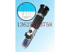 用于測(cè)定乙二醇(丙二醇)型防凍液冰點(diǎn)、蓄電池電解液比重及玻璃清洗液冰點(diǎn),又稱(chēng)防凍液冰點(diǎn)儀;電池液比重計(jì);玻璃清潔液冰點(diǎn)儀。只要滴幾滴液體在棱鏡上,然后向著光觀察,就可以快速讀出溶液的濃度。通過(guò)測(cè)得的百分比可以知道以丙二醇和乙二醇為基的防凍系統(tǒng)的冰點(diǎn)和汽車(chē)前窗玻璃清潔液的冰點(diǎn),還可用來(lái)檢查蓄電池內(nèi)電解的比重及使用狀態(tài)。測(cè)量范圍:防凍液冰點(diǎn):0到-50℃;電池液比重:1.10到1.40;玻璃液冰點(diǎn):0至-40℃。操作說(shuō)明:掀起蓋板用柔軟絨布交蓋板及棱鏡表面擦拭干凈;將待測(cè)液體用吸管滴于棱鏡表面,合上蓋板輕輕按壓,將折射計(jì)對(duì)向明亮處,旋轉(zhuǎn)目鏡使視場(chǎng)內(nèi)刻度線清晰,讀出明暗分界線在標(biāo)示板上相應(yīng)標(biāo)尺上的數(shù)值即可;測(cè)試完畢,用絨布擦凈棱鏡表面和蓋板清洗吸管,將儀器放還于包裝盒內(nèi);在測(cè)量電池液時(shí),注意不要灑在皮膚和眼睛上,以防燒傷,測(cè)試后仔細(xì)擦凈儀器