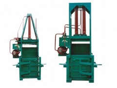 液壓打包機包括支架,支架帶有底板和前后側擋板,支架上安裝有千斤頂,千斤頂帶有活塞桿,活塞桿右端連接有豎直的推料板,推料板右側面連接有推料板條,相鄰推料板條之間的空隙為板上穿繩槽;支架上面右部帶有壓料上擋板,壓料上擋板左側的支架上面帶有進料口;前后側擋板右側的支架上分別固定連接有前后側擋條,相鄰側擋條之間的空隙為穿繩口;支架右端帶有出料口,出料口處的支架右端鉸接有門板,門板左側面連接有門板條,相鄰門板條之間的空隙為門上穿繩槽;前后側擋板、推料板和底板圍成的空腔為進料腔,前后側擋條、壓料上擋板、門板和底板圍成的空腔為擠料腔;門板和支架右端固定連接有鎖定裝置。并可根據(jù)需要在一定范圍內調節(jié)打包的大小。