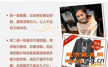 要讓寶貝不花錢也能吸引眼球,首先第一招當(dāng)然是選圖。從選圖的角度,主圖好比人臉,兩種主圖最吸引人氣:
