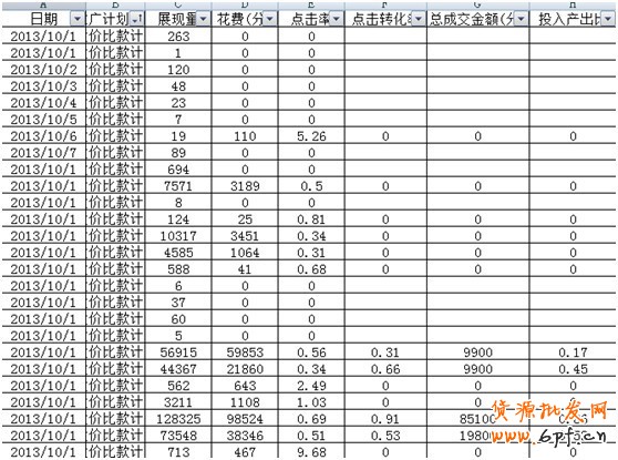 得出這些結(jié)果之后,依然用標(biāo)色篩選法,進行自定義篩選,如:展現(xiàn)量>=10000,花費<=30000,點擊率>=0.5,點擊轉(zhuǎn)化率>=0.5,總成交金額>=30000,投入產(chǎn)出比>=1,標(biāo)記好后,看一下結(jié)果:
