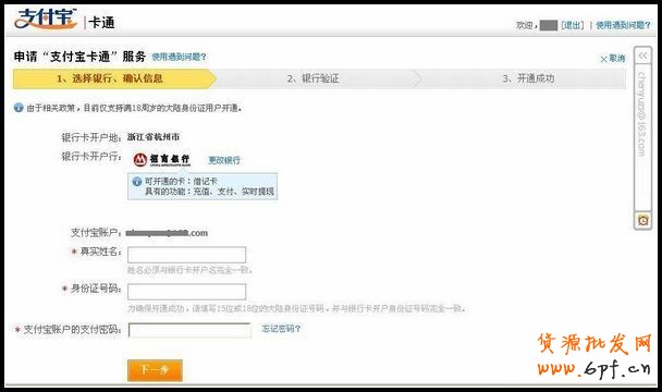 方式一:在線開通支付寶卡通。(我們以方式一為例)