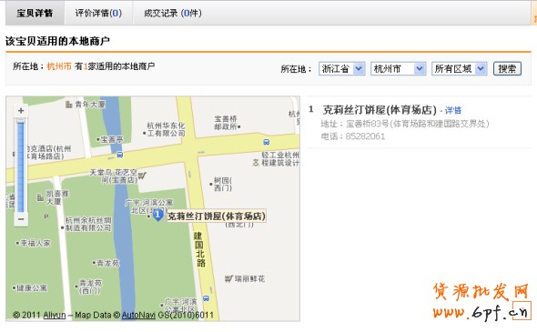 4、 首先在適用區(qū)域篩選該寶貝的使用區(qū)域,如:浙江省-杭州市,接著輸入本地商戶名稱進(jìn)行商戶查找,如輸入:克莉絲汀,最近按“查找本地商戶”按鈕,系統(tǒng)將會 自動查找出所有克莉絲汀的商戶。我們也提供了區(qū)域找包查找功能,目前可支持全國、江浙滬、珠三角、京津區(qū)域的統(tǒng)一查找。