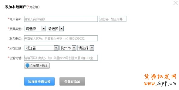 (4)如果搜索不到您的實體店,點擊上方“添加本地商戶”按鈕,根據提示將實體店店名、地址等信息填寫完成后提交。