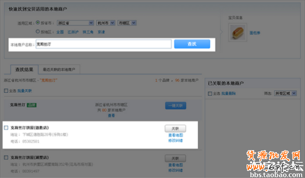 電子憑證商戶選擇核銷網(wǎng)點時,無法對本地商戶進行修改,只能是新增,且新增需要較長時間的審核新增網(wǎng)點,而關(guān)聯(lián)工具新增是實時的。因此,當需要新增網(wǎng)點時,建議放棄核銷網(wǎng)點的選擇,使用賣家中心后臺關(guān)聯(lián)工具關(guān)聯(lián)。