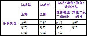 完整填寫屬性,要求賣家盡可能完善商品的屬性選項,同時,運動戶外行業(yè)對各類目商品必填及建議填寫屬性要求見下表:
