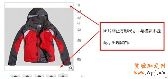 即商品詳情頁面中,寶貝圖片展示框與圖片間出現(xiàn)空白部分。