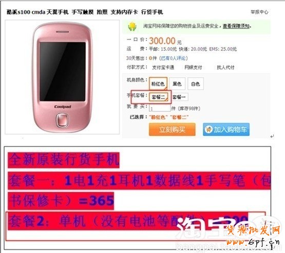 該商品一口價為300,而300元的套餐為單機,無任何配件。正常套餐的實際價格為365元