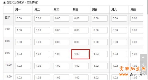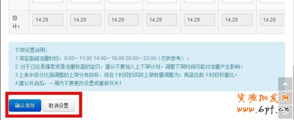 其它的時(shí)段也是這樣類推,想在哪個(gè)時(shí)段上架多少就設(shè)置多大比例。設(shè)置完了我們就要開始保存設(shè)置,如下圖: