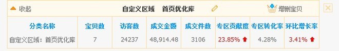 環比增長率和專區貢獻度都有很大提升,僅僅7件寶貝就為店鋪帶來的48914.48的銷量業績。表現非常好。