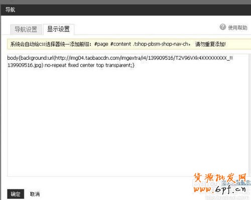 3.然后到自己的店鋪首頁(yè)去裝修>點(diǎn)選裝修>導(dǎo)航裝修>點(diǎn)顯示設(shè)置>輸入下面一段代碼(可以復(fù)制拷貝進(jìn)去):