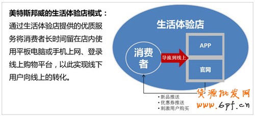 生活體驗(yàn)店模式在服裝零售O2O領(lǐng)域是一個大膽、新穎的嘗試,在這種模式下,門店將不再局限于靜態(tài)的線下體驗(yàn),不再是簡單的購物場所,而是購物的同時可以愜意的上網(wǎng)和休息,尤其給陪著配偶購物的男人們提供一個愜意的環(huán)境來休息,他們無聊的時候可以喝著咖啡上網(wǎng),瀏覽一下美邦A(yù)PP上得商品介紹,或者直接手機(jī)下單,快遞到家里去,這會加大美邦A(yù)PP的下載量,為用戶的手機(jī)網(wǎng)購使用量和下單量打好用戶基礎(chǔ)。