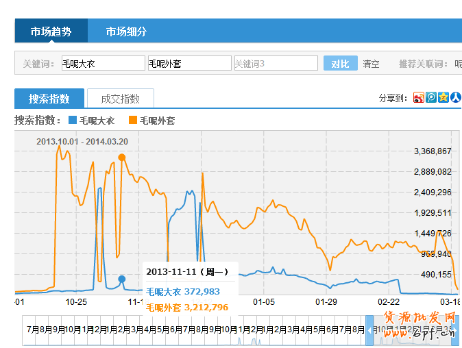 如果你覺得這個差別不算什么,那我們再到淘寶指數(shù)里面去看看