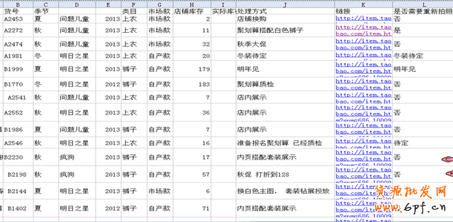 2丶運營要對每一件商品進行跟蹤,備注好店內的屬性,年份,類目,來源,處理方式等,每周的新品都這樣來跟蹤下,根據庫存多少給出相應的解決方案。