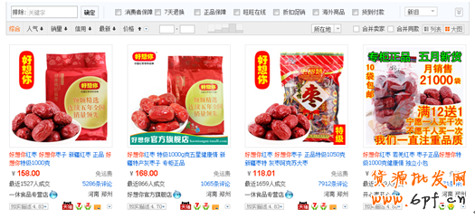 淘寶搜索好想你,首頁第一行就有兩款這家店鋪的好想你棗,月銷量均在1500單以上。