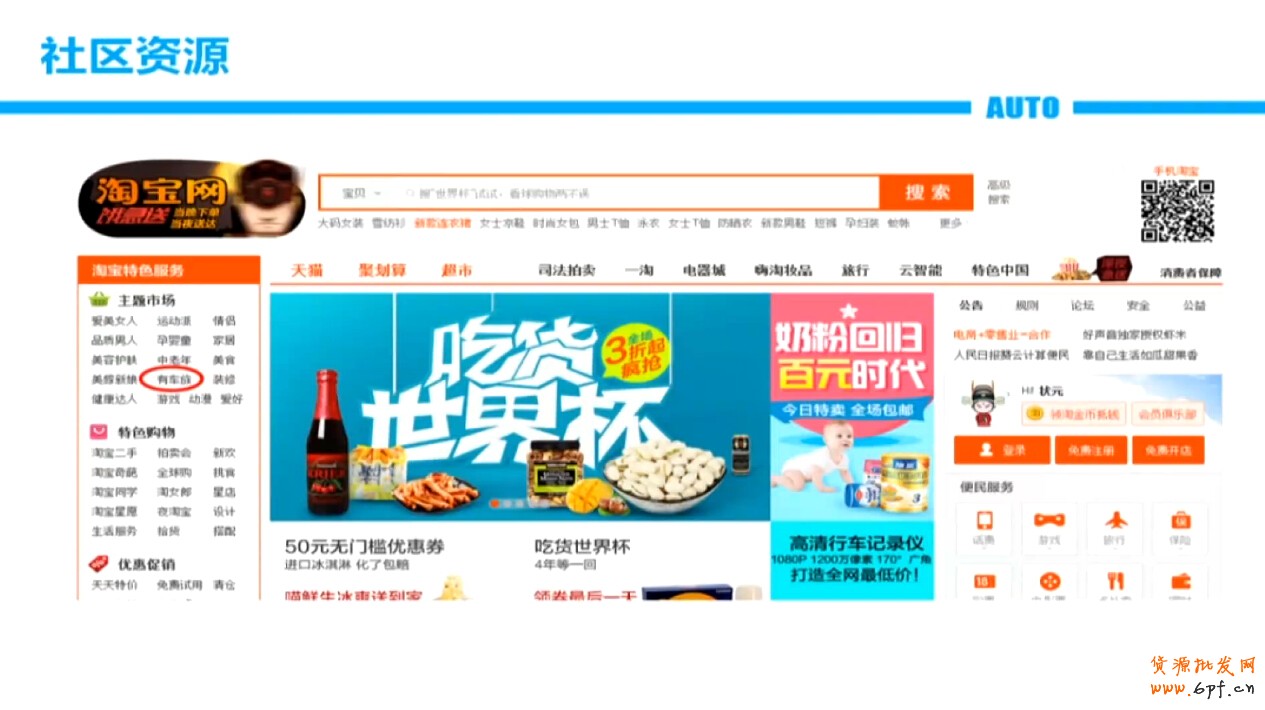目前淘寶首頁上有兩個入口可以進入淘寶汽車社區。