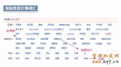 產(chǎn)品屬性,是可以針對(duì)關(guān)鍵詞增加定語的詞匯,即長尾詞,精準(zhǔn)詞,以保證關(guān)鍵詞流量的精準(zhǔn)度。這樣的詞精準(zhǔn)度高,質(zhì)量得分高。打個(gè)比方,如上圖:如羽絨服和板型結(jié)合,得出 修身羽絨服,再加衣長,就變成修身中長款羽絨服。就形成了長尾詞,以此引進(jìn)的流量,即為比較精準(zhǔn)的流量。