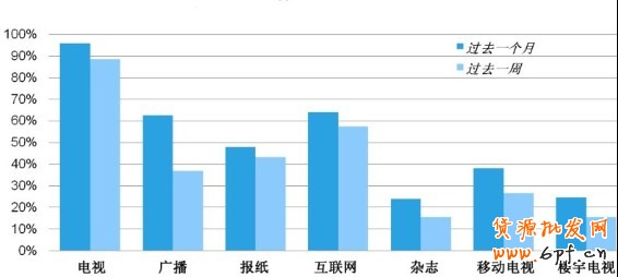 據賽立信調查,中國的電視、廣播、互聯網的接觸率分別是95.8%、62.5%、64.1%,如圖: