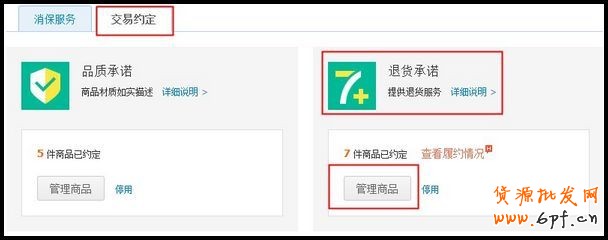理模塊,點擊退貨承諾模塊下的“管理商品”按鈕