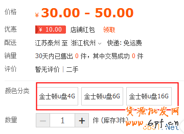 案例五: 將不同容量(材質)放在一個鏈接里出售(例如u盤)