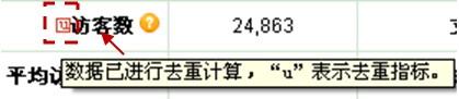 在指標(biāo)前方有“去重計算”標(biāo)識,如下圖: