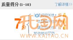 因此,質量得分是關鍵詞的搜索匹配相關度的綜合指數,當買家搜索關鍵詞時,匹配相關度越高的寶貝質量得分越高,反之則越低。在關鍵詞出價相同的情況下,質量得分越高,排名越靠前。推廣展示費用越低。