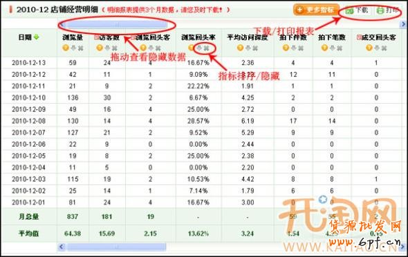 在“店鋪經(jīng)營(yíng)明細(xì)”中,您可以看到當(dāng)前所選時(shí)間段或日期的經(jīng)營(yíng)詳細(xì)報(bào)表,并對(duì)其中涉及的數(shù)據(jù)指標(biāo)實(shí)現(xiàn)排序、隱藏功能,以便于用戶(hù)做數(shù)據(jù)查看及分析。您還可以選擇“下載”、“打印”明細(xì)表。