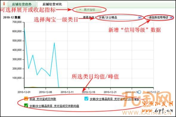 在“店鋪經(jīng)營(yíng)對(duì)比”中,您可以查看主營(yíng)類(lèi)目經(jīng)營(yíng)對(duì)比趨勢(shì),并加入了淘寶一級(jí)類(lèi)目的峰值、均值數(shù)據(jù)、所選類(lèi)目的店鋪數(shù)及店鋪在所選指標(biāo)的排名情況。您可以自定義選擇查看淘寶所有一級(jí)類(lèi)目與自家店鋪的數(shù)據(jù)對(duì)比,也可以單選查看主營(yíng)類(lèi)目下的對(duì)比指標(biāo)。現(xiàn)在更添加“信用等級(jí)”的篩選~