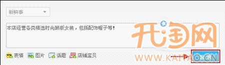 現(xiàn)在你已經(jīng)進入到你的掌柜說首頁,在文本框中,輸入自己想要表達的文字或者圖片,然后單擊“發(fā)表”按鈕,如圖5-21所示。