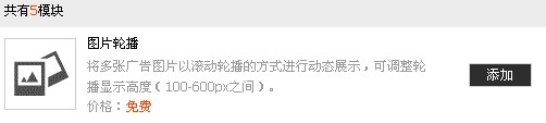 2:回到裝修頁面,在首頁添加一個通欄950自定義,選擇”圖片輪播“模塊。