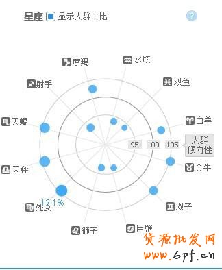 基于注冊信息和淘寶消費記錄綜合判斷出喜好度、買家信譽度性別比例為:女性22%,男性:78%;及各層級人群年齡占比,星座人群占比。