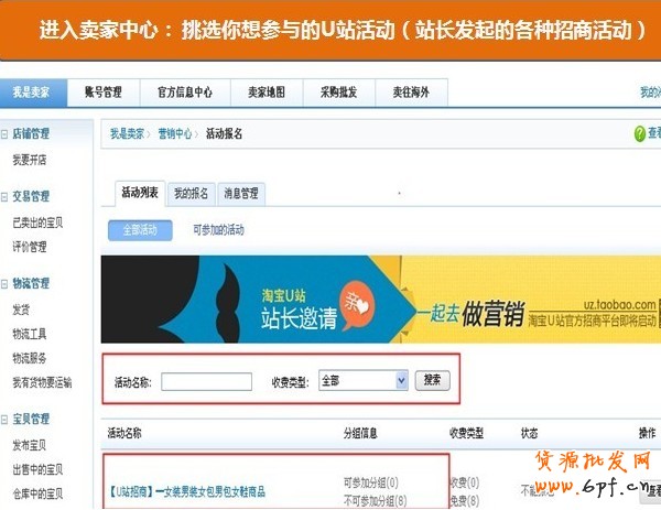 三、通過招商貼的各類活動,報名符合自身商品定位的U站進行合作: