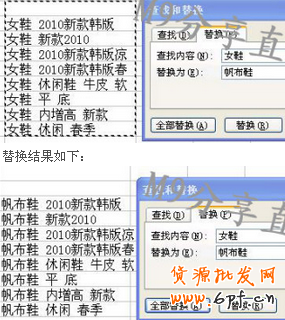 第二步:下拉,復制這些關鍵詞。然后在EXCEL中按CTRL+F用帆布鞋替換女鞋。