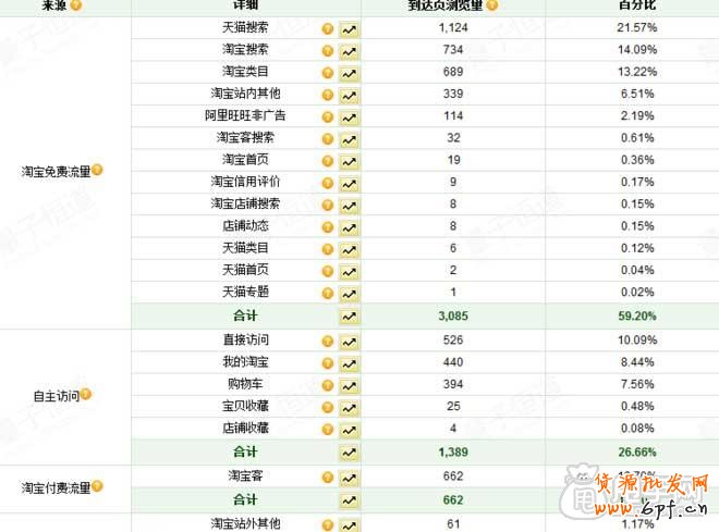 2.流量來源構成:檢查每個流量比例是否協調,如果流量不正常說明店鋪在整體流量布局出現了大的問題。