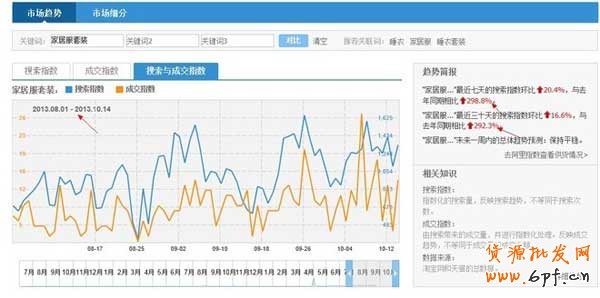 點一下,就可以跳轉到這里,默認是搜索指數,但是我一般習慣搜索和成交兩個指數一起來參考,可以看出一個行業的淡季和旺季,這個是必須了解的,不要傻到淡季殺入市場。。統計時間記得看,底下可以調統計時間段。