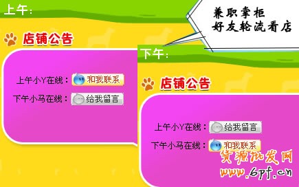 靚點(diǎn):主帳號(hào)、子帳號(hào)分工合作,效率更高,開(kāi)店輕松自如。將子帳號(hào)分發(fā)給您的家人和朋友,同學(xué)等:老同學(xué)認(rèn)識(shí)的人多,平時(shí)在線(xiàn)時(shí)間長(zhǎng),負(fù)責(zé)銷(xiāo)售;老婆心細(xì),對(duì)什么都很認(rèn)真,負(fù)責(zé)客服;老弟在上大學(xué),學(xué)計(jì)算機(jī)的,負(fù)責(zé)技術(shù)支持;Hahaha~~~當(dāng)“老板兒”的感覺(jué)多好! |
