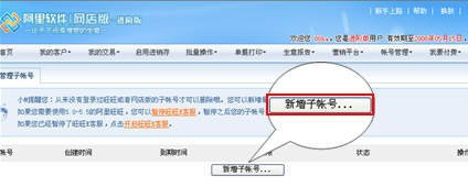 | 還是“網(wǎng)店版”頁(yè)面,在“帳號(hào)管理”下面,選擇“管理子帳號(hào)”,如圖: | |||||||||