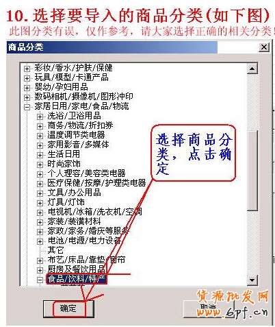 10、選擇要導入的商品分類