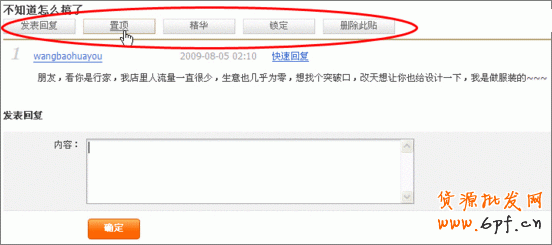 上面我們設定好顯示模式后,下面學習管理,就是如何發表、回復、刪除、置頂精華噢,這樣我們才能更好的跟訪問者交流。即時回復留言、刪除那些無聊的廣告……