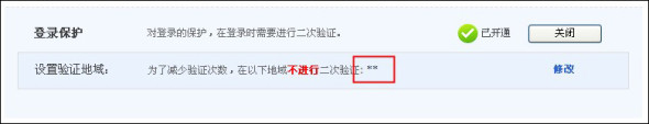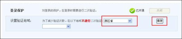 6、設(shè)置完成后點(diǎn)保存,這樣萬(wàn)一賬號(hào)被盜騙子就不能在浙江以外的地點(diǎn)登陸了;為了保密,設(shè)置好的登錄地點(diǎn)的被隱藏的:
