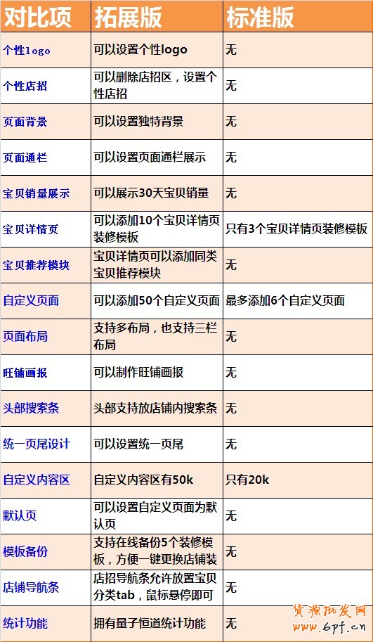 本文來源: 淘寶旺鋪標準版和拓展版的功能區別