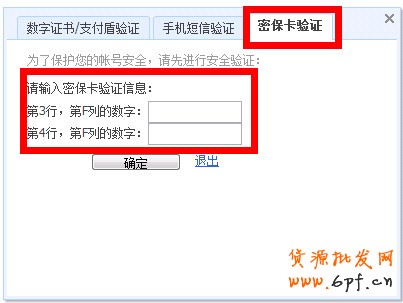 以上面的驗(yàn)證要求為例第3行,第F列是671 第4行,第F列是915 注:出于安全考慮,每次要求驗(yàn)證的行和列是不同的 3.將密保卡信息輸入,完成驗(yàn)證將第二步獲得是數(shù)字填入驗(yàn)證框,完成驗(yàn)證。比如上面的例子就是要將671和915分別填入,然后點(diǎn)擊“確定”