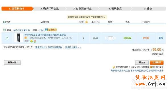 我們在店鋪選購好寶貝后(推薦使用購物車),進入付款界面: