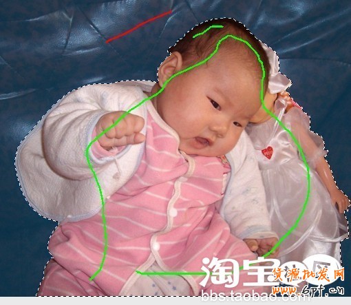 看見沒,在想留的部分畫一下,飛兒想留下寶寶和那個布娃娃,就這么隨意畫了一下。