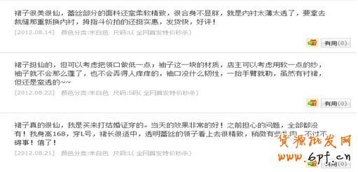 淘寶上很多小店鋪無法做到大店鋪訪問深度,原因是因為重心全部在關聯上面了。其實不然,訪問深度一定是關聯銷售加老客戶隨意瀏覽的綜合。賣家通過評價,了解到面對的是什么類型的人群,新品上線后可以向老客戶推薦適合客戶的新商品。因而商品評價越多,對潛在消費者的幫助就會越大。感受到體驗的消費者自然而然就會將你的店鋪與其它的店家區分開來。這樣一來,消費者評價就變成了店鋪的金字招牌了。既然是金字招牌,可以將它掛在最醒目的位置,比如在商品圖片的旁邊放上商品評價的提示條(具體評價可放在頁面下面)。既體現了店鋪的獨特性,也讓消費者一目了然。
