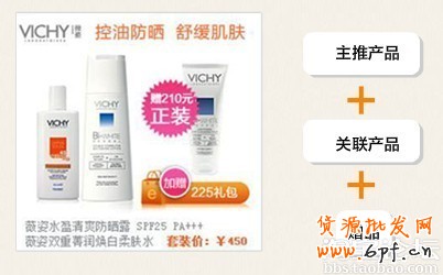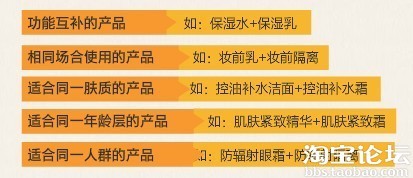 所以建議寶貝內頁的關聯銷售最好是同系列間的關聯,而組合寶貝的關聯銷售則是與其適合人群相同的其他類單個產品或組合的關聯銷售。如美白補水面部套裝對應的關聯銷售為美白浴鹽、美白面膜,而不能選擇清爽控油面部套裝或緊致套裝,因為買家已經根據專題頁面的推薦選擇美白這一關鍵詞,說明其需求是美白,所以在這里推薦其他的都是不合適的。