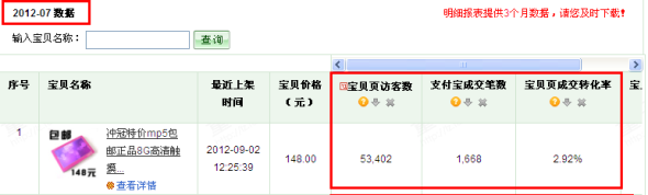 通過上面的數(shù)據(jù)我們可以看出,該店鋪目前主推3款MP4,寶貝1的各項數(shù)據(jù)都相對優(yōu)秀,具有很好的發(fā)展?jié)摿ΑS谑俏覀冞x取該寶貝作為主推寶貝,制定優(yōu)化思路。(此處略)