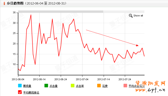 ②點擊率的提升。通過對紅標的測試和更換點擊率低的關鍵詞匹配方式,刪除展現(xiàn)高沒有點擊的關鍵詞,進一步提升CTR